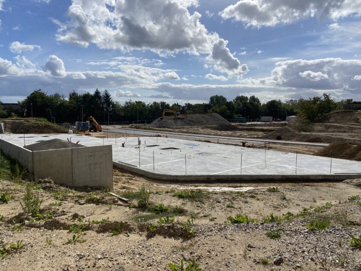 UNDER OPFØRELSE: september 2020. Fælleshusets fundamentet er støbt, og inden længe står der et fint nyt hus og byder velkommen til Bispehaven.